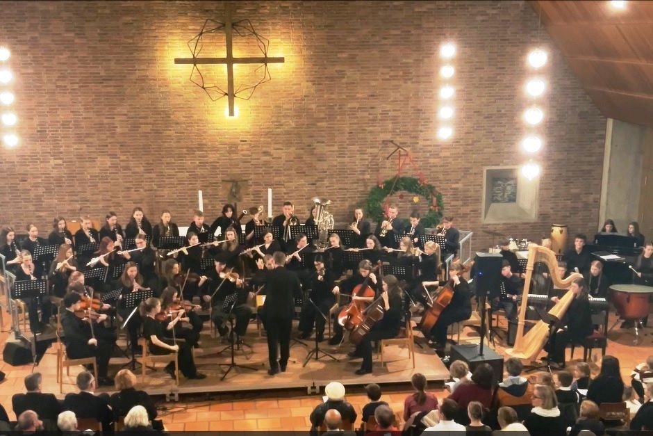 Weihnachtlich und schwungvoll zugleich begann das Unterstufenensemble unter der Leitung von Lea Branz mit modern interpretierten Klassikern: Auf eine Swing Version von „Süßer die Glocken nie klingen“ folgte der Gospel-Song „O Happy Day“. Auch mit dem abschließenden „Jingle Bell Rock“ zeigten die etwa vierzig Instrumentalisten aus den Klassen 5 und 6 ihr erstaunliches musikalisches Können.