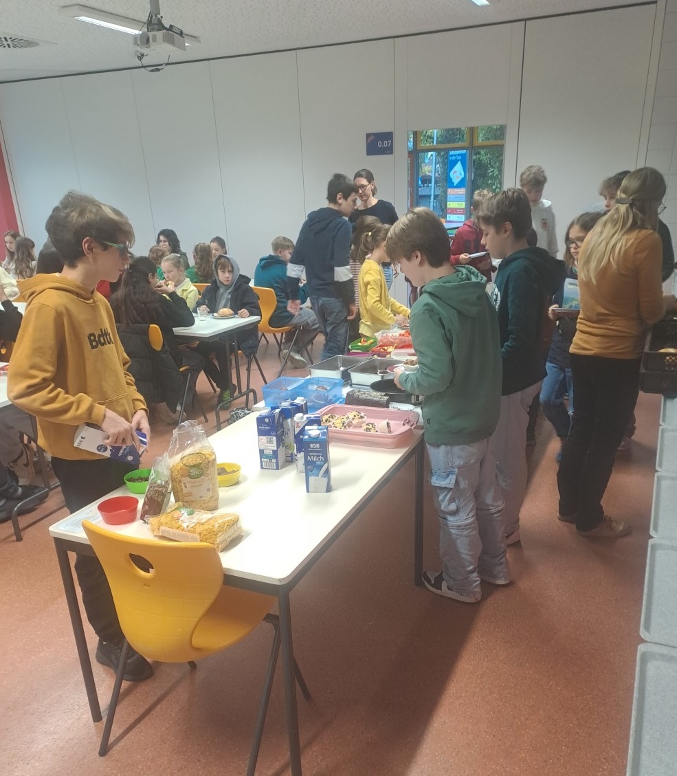 Im Rahmen unseres Patenschaftsprojekts fand unsere erste gemeinsame Aktion statt: das PatenFarbenFrühstück. Dabei trafen sich alle Patinnen und Paten der Klassen 8 mit ihren „Patenkindern“ aus den Klassen 5 zu einem bunten Frühstückstreffen.